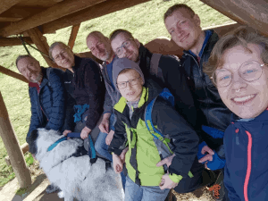 Durch den Wald nach Kressbach, dann nach Weilheim, Hirschau, Unterjesingen und auf dem Weg nach Entringen noch eine kleine Schottereinlage eingebaut, damit auch alle wissen, wo Joggis Gütle liegt, wo wir uns am 13.7. ab Nachmittags zur traditionellen BYOB-Party u. a. wieder mit Waffeln vom Holzfeuer, treffen. Nun ist Schotter nicht jedermanns oder -fraus Ding, wir haben v. A. das Wenden trotzdem kameradschaftlich gemeistert. Dann Bundesstraße weiter nach Herrenberg, das Ziel Schönbuchturm ist ausgeschildert.