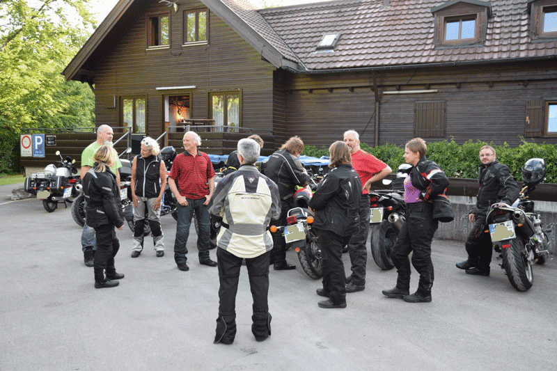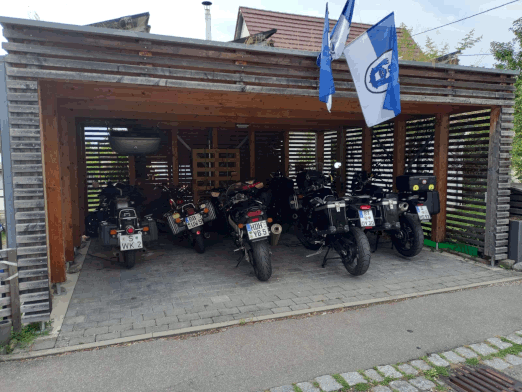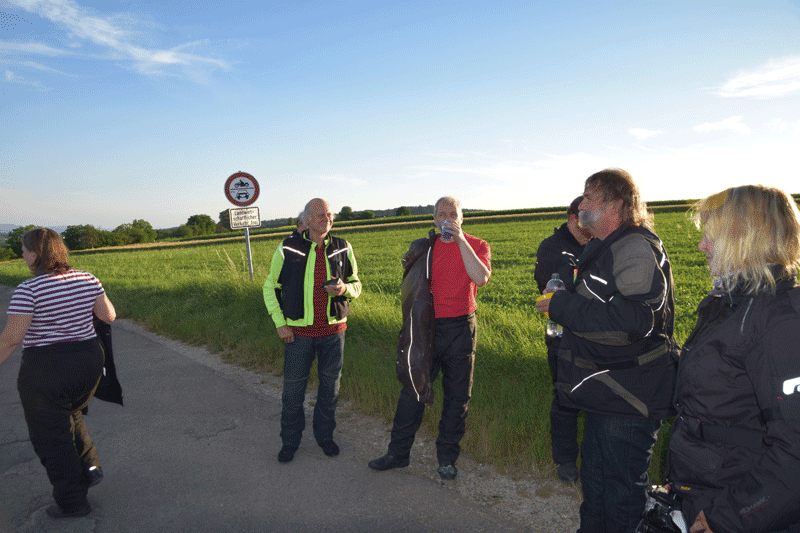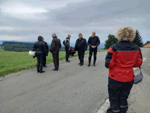 Durch den Wald nach Kressbach, dann nach Weilheim, Hirschau, Unterjesingen und auf dem Weg nach Entringen noch eine kleine Schottereinlage eingebaut, damit auch alle wissen, wo Joggis Gütle liegt, wo wir uns am 13.7. ab Nachmittags zur traditionellen BYOB-Party u. a. wieder mit Waffeln vom Holzfeuer, treffen. Nun ist Schotter nicht jedermanns oder -fraus Ding, wir haben v. A. das Wenden trotzdem kameradschaftlich gemeistert. Dann Bundesstraße weiter nach Herrenberg, das Ziel Schönbuchturm ist ausgeschildert.